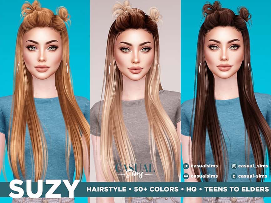 Feminine, long, straight, ponytail, half up half down, updo, cute, assymetrical, bun, double.