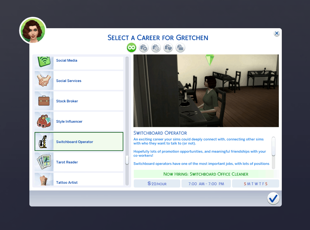 An exciting career your sims could deeply connect with, connecting other sims with who they want to talk to (or not). Hopefully lots of promotion opportunities, and meaningful friendships with your co-workers! Switchboard operators have one of the most important jobs, with lots of positions that need to be filled. So apply today at Pacific Zell!!