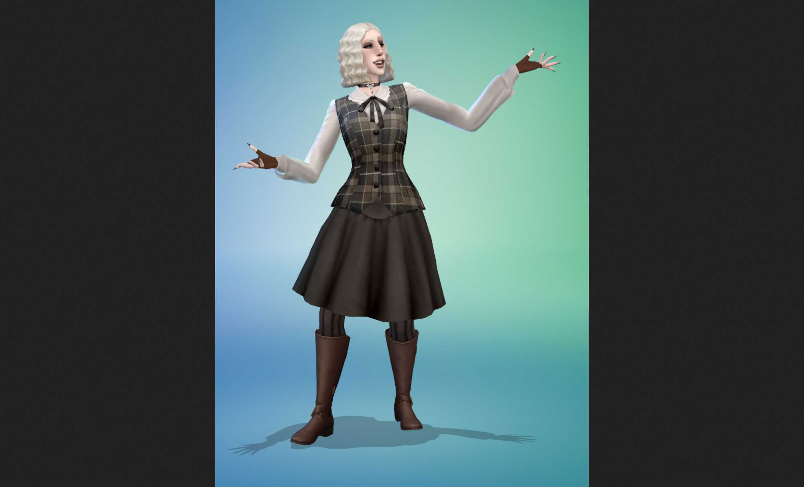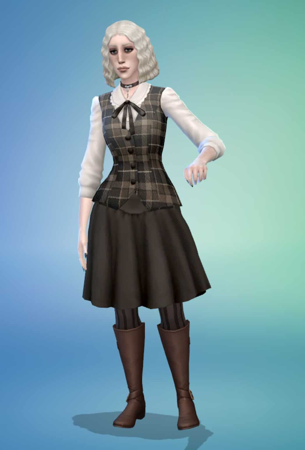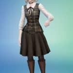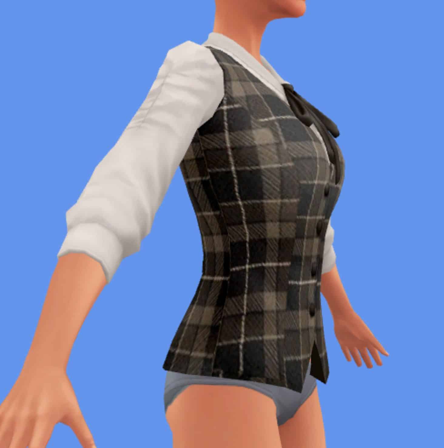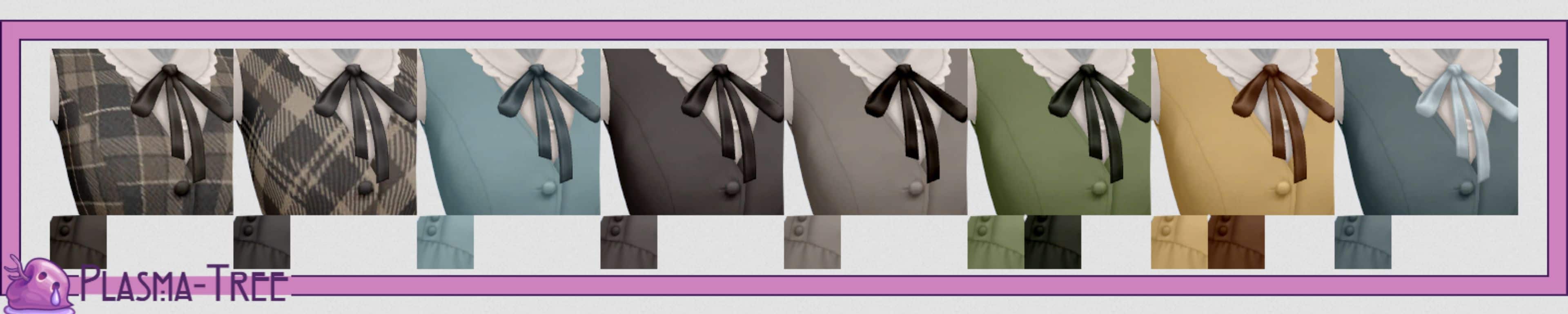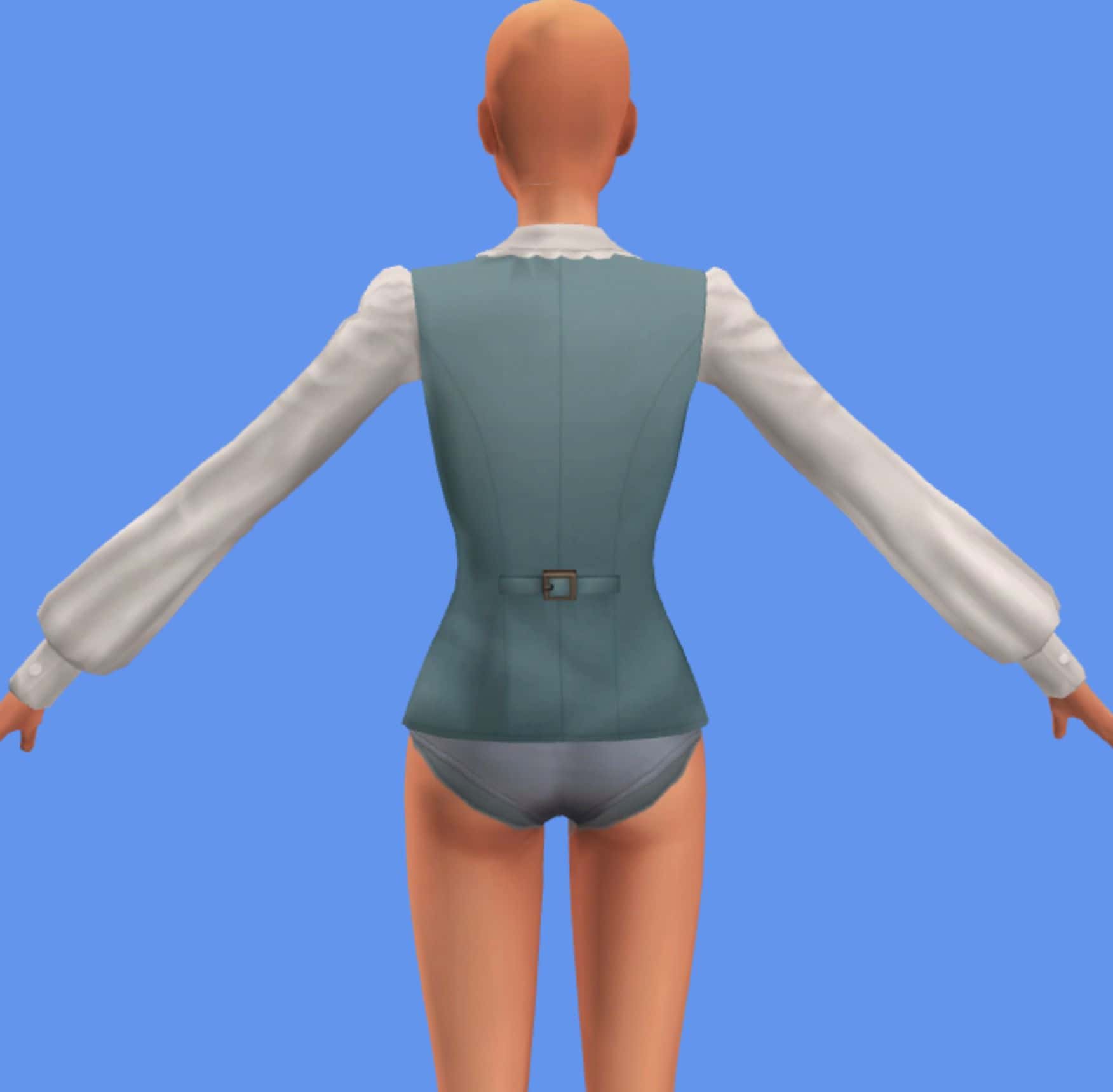 Then have these victorian/edwardian inspired CAS items– 2 waistcoat tops for the teen to elder feminine frame, one with long sleeves and one with rolled sleeves, and a skirt that matches. Available for everyday, party, hot weather, cold weather, and formal. Base game compatible. Disabled for random.