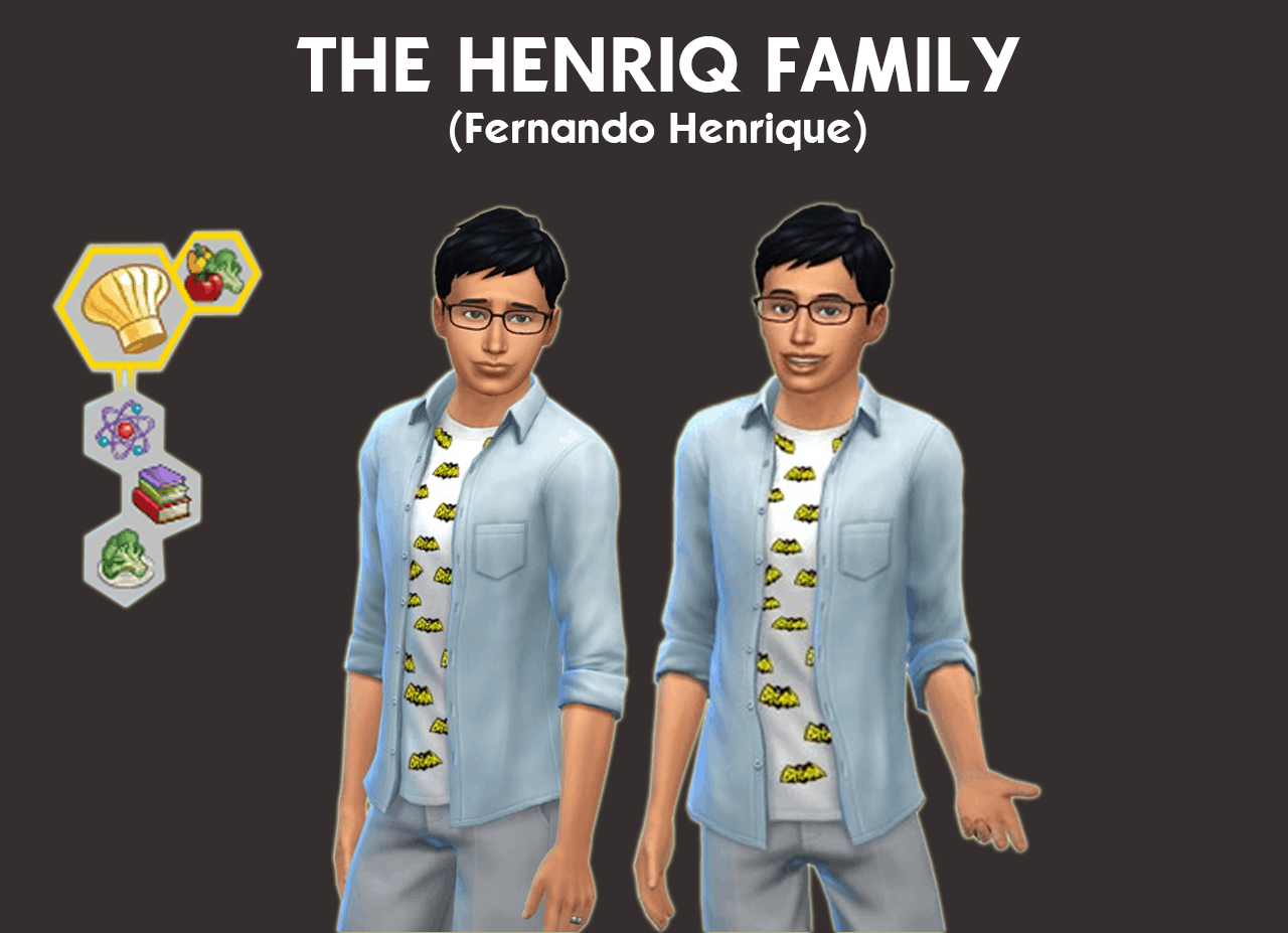 His name is Fernando and he’s a young adult Sim. He had a memory loss so he doesn’t remember anything from his past. It is up to you to rewrite his story from zero!! I know this sounds lazy, but… it is indeed his story.