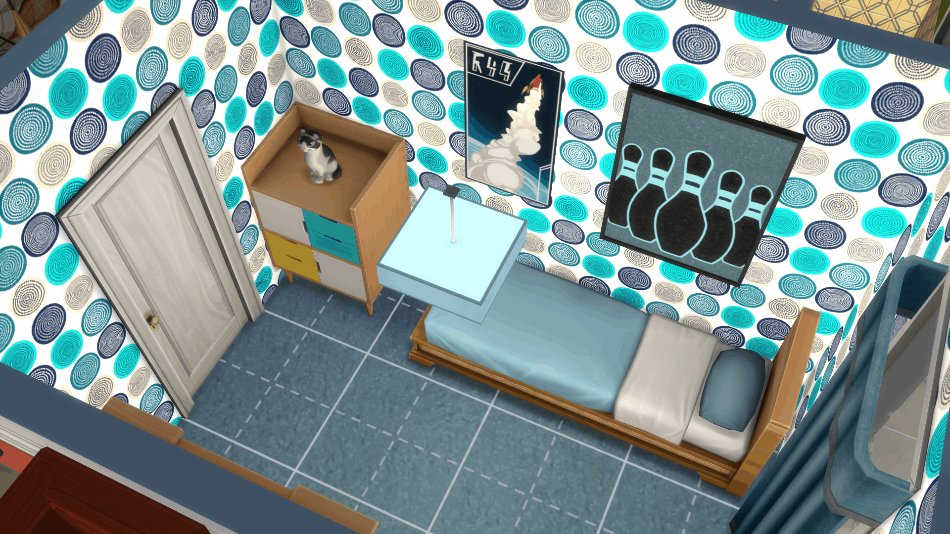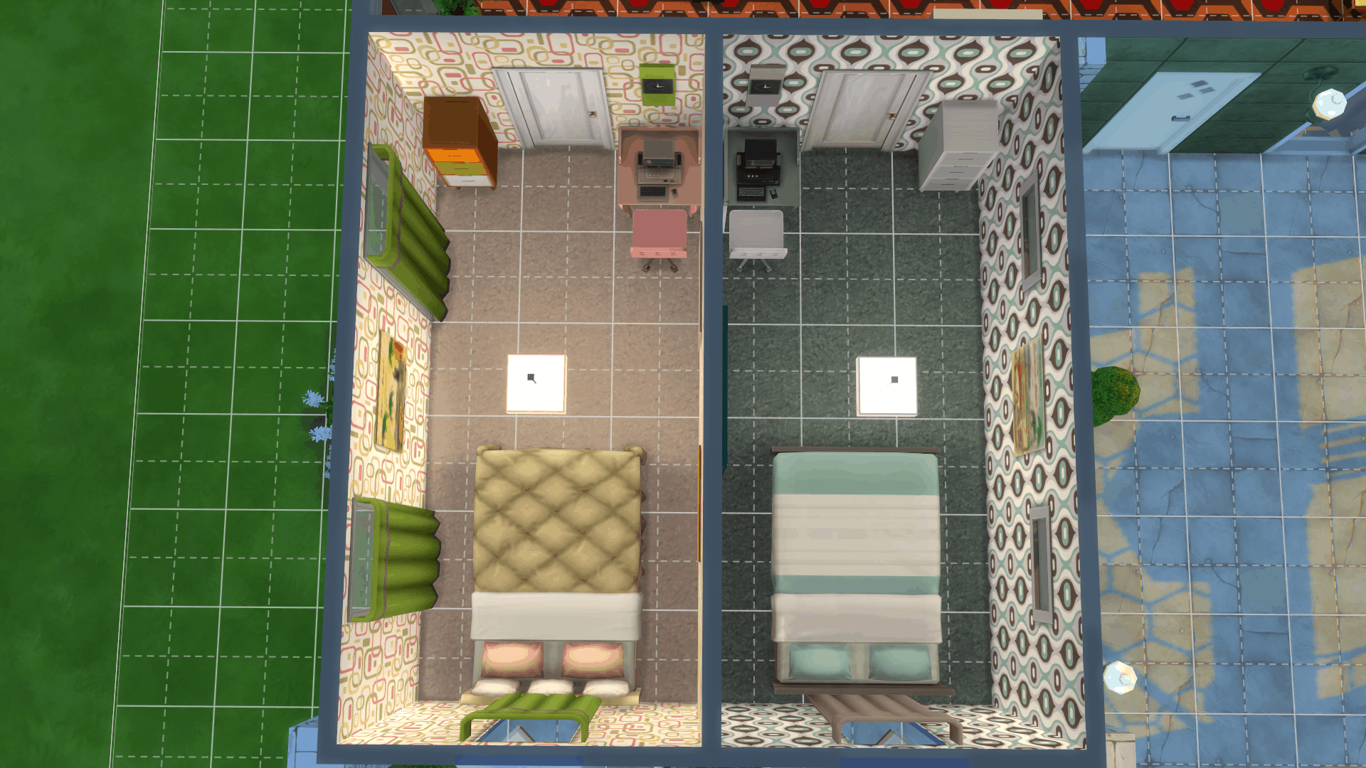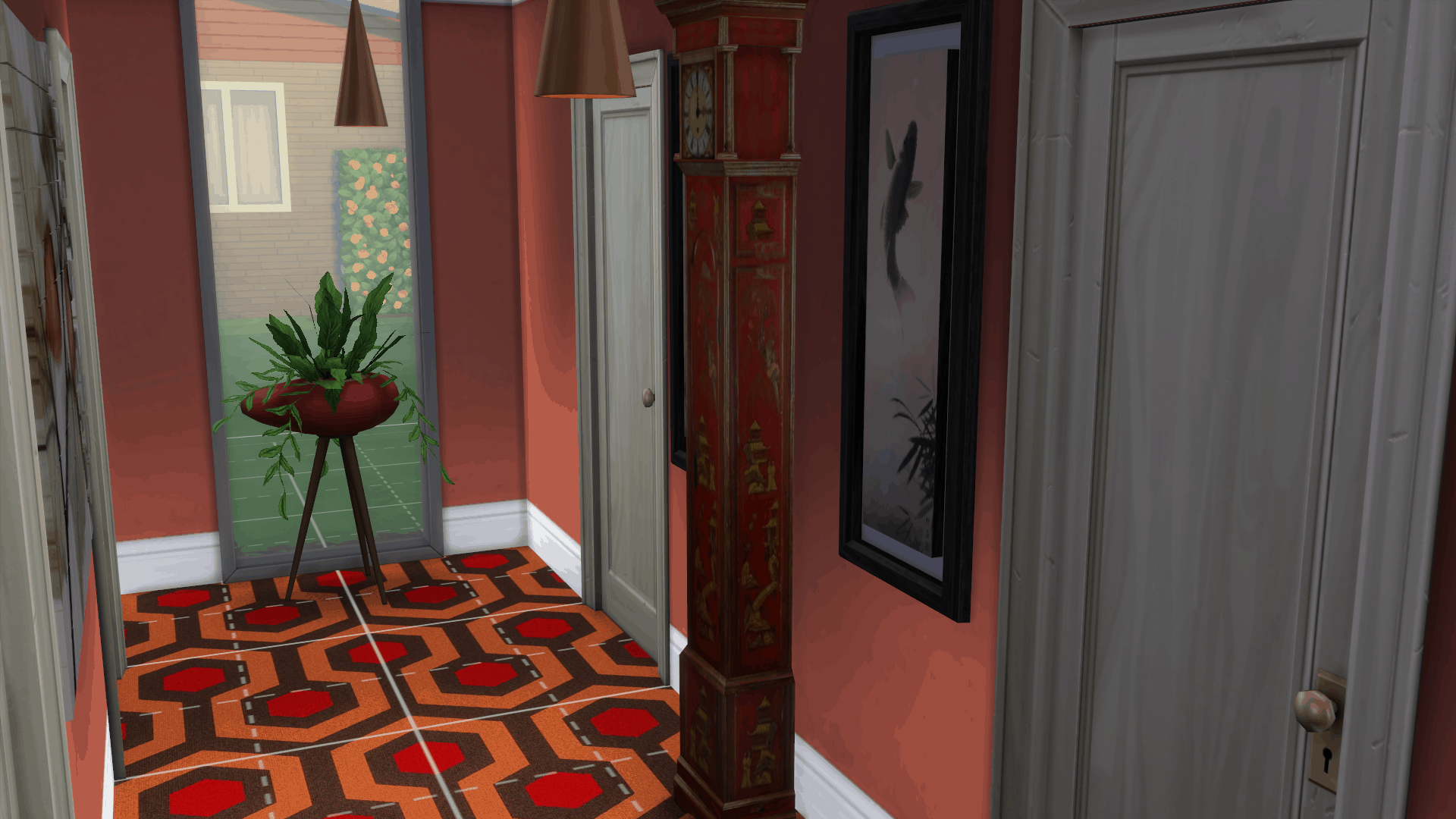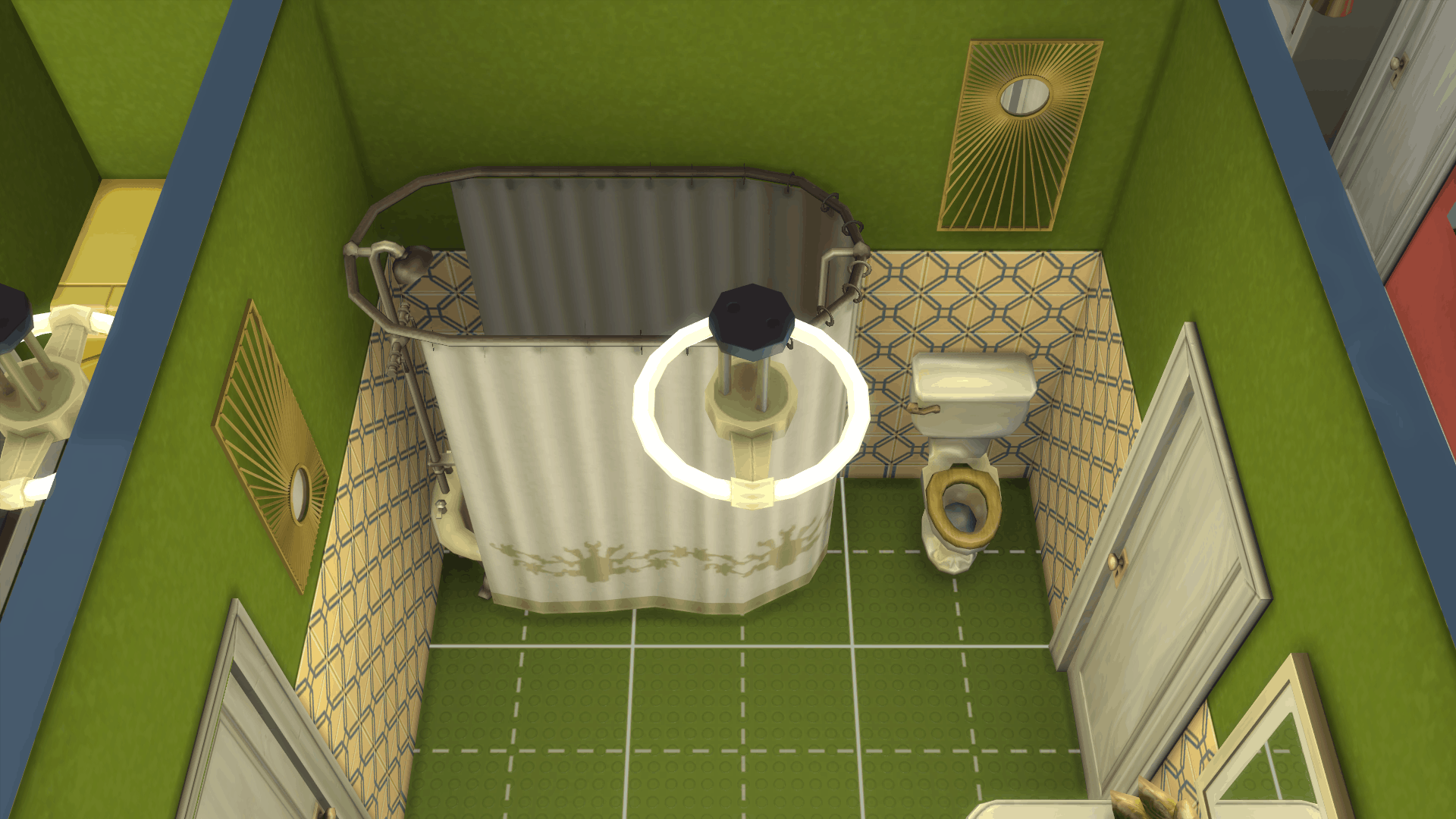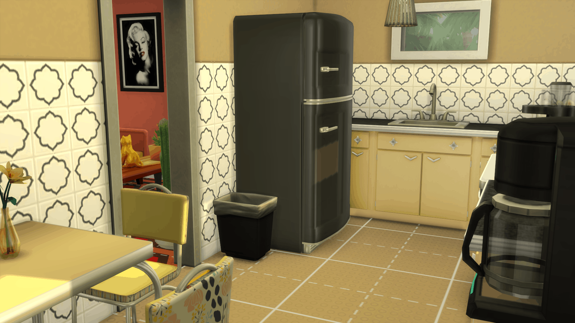 Hello everyone! I’m back with another home from my Atomic Acres neighorhood. I call this one The Mulholland Drive because I thought of California while building it. It’s a three bedroom, one bathroom home with a livingroom done in Hollywood and Japanese themes. The kitchen has an eat-in area, and the bathroom has a laundry room adjacent to it. The smaller of the three bedrooms can be for children if needed. Feel free to change things to suit your needs. The pool area is very secluded among the palms and shrubbery, and there’s a sitting area under the front awning with a place to grill. I used the new Eco-Lifestyle roofing for this build as well. I hope you all like it! I’ve included an additional photo to show where I built the lot, but you can place it wherever you please. My Sim featured in the pics does not come with the home.