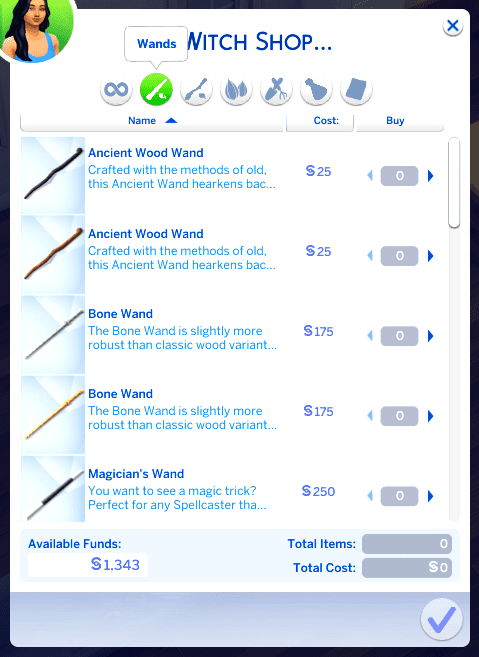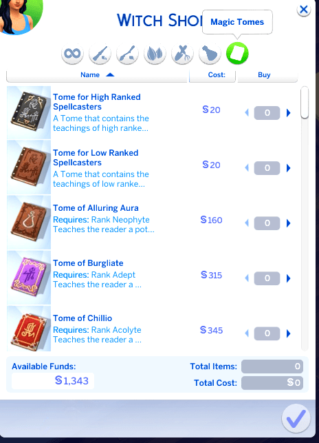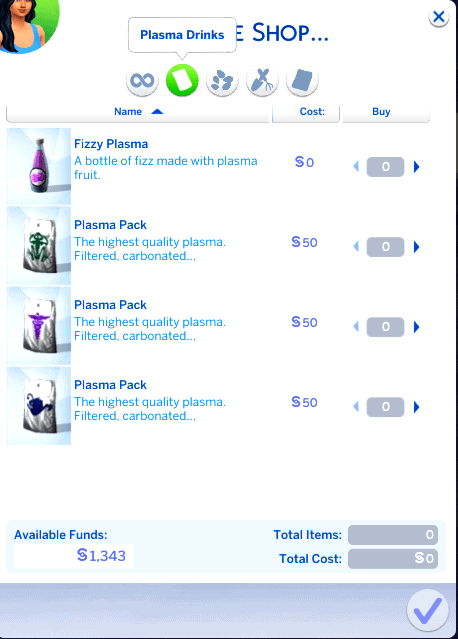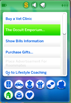So I made an occult shop, which you can find on the phone and PC. However, it will only show up to sims who are of the occult. Humans sims won’t see it. The shop sells everything meant for occults, so witch tomes, wands, familiar, plasma packs, kelp, etc. Sadly it doesn’t look like aliens have anything so they weren’t added.