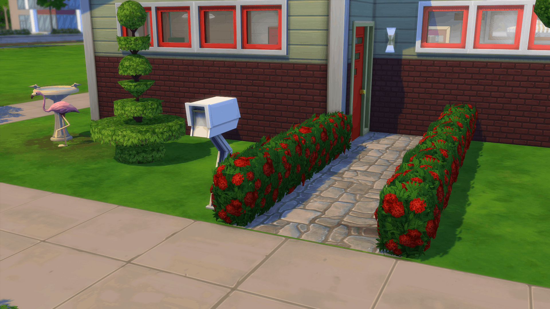 Now showing from Atomic Acres is lot number 3 – The Proxima! Are you ready for the ’60s? When we build modernism…you’ll get the latest and greatest in modern design here in our neighborhood! Just look at those roof lines! You’ll wonder how they made those slants without falling to their deaths! And those elegant and sleek windows that let in the morning sunlight everyday before you go to work! This is truly perfection in the Mid-century style! They say The Proxima is named after a planet in the future, so what better way to start off the Space Age than in your very own futuristic sector! This little two bedroom is perfect for starting a family. The striking red and green color themes will brighten your life everyday!