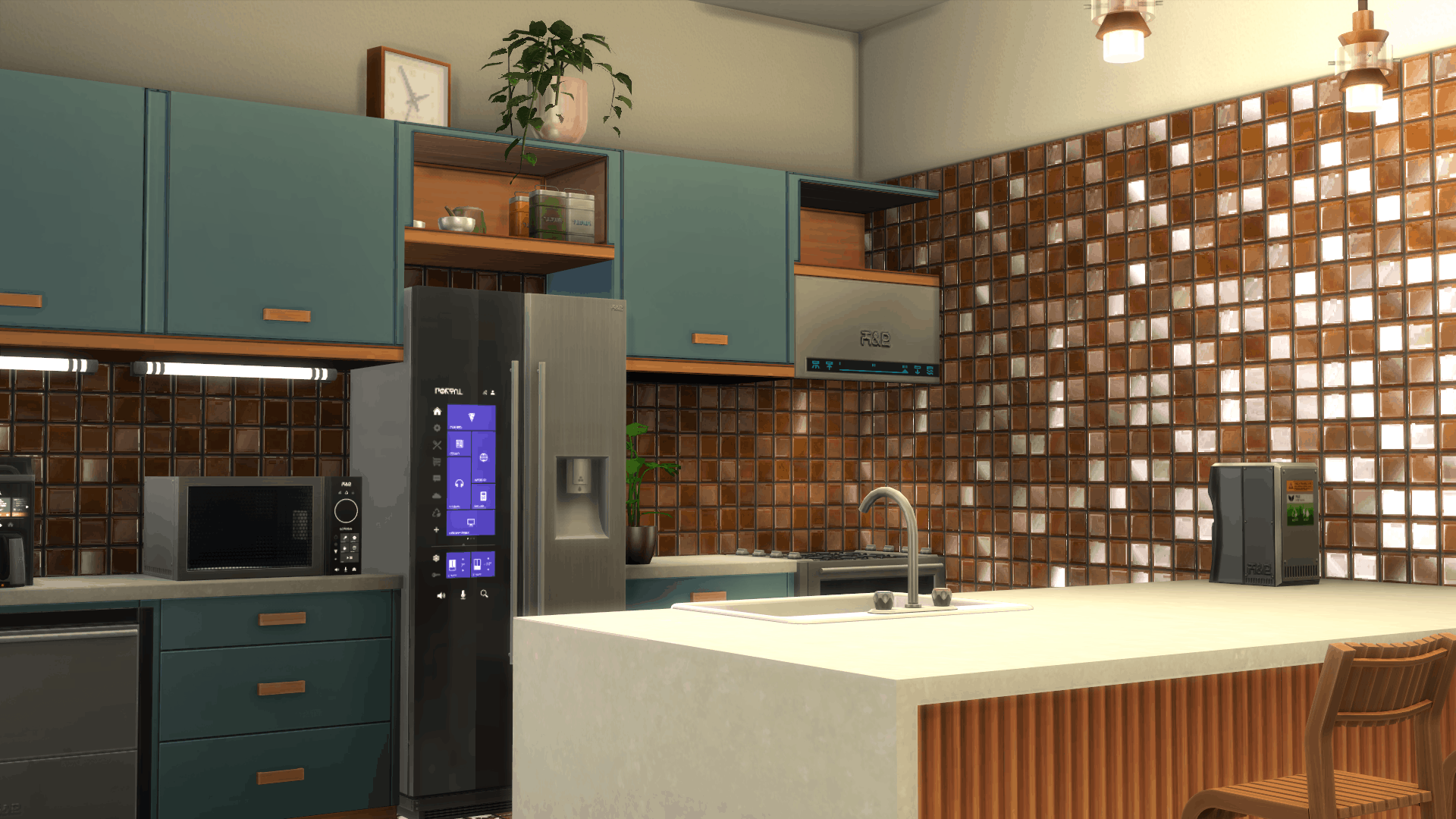 This pack is completely base game compatible, but it is also compatible with Eco Lifestyle! The new H&B EcoPortal fridge will boost your neighborhood’s green eco-footprint and most other appliances have reduced power consumption. Of course, they’re also fully upgraded, this is a total flagship lineup!