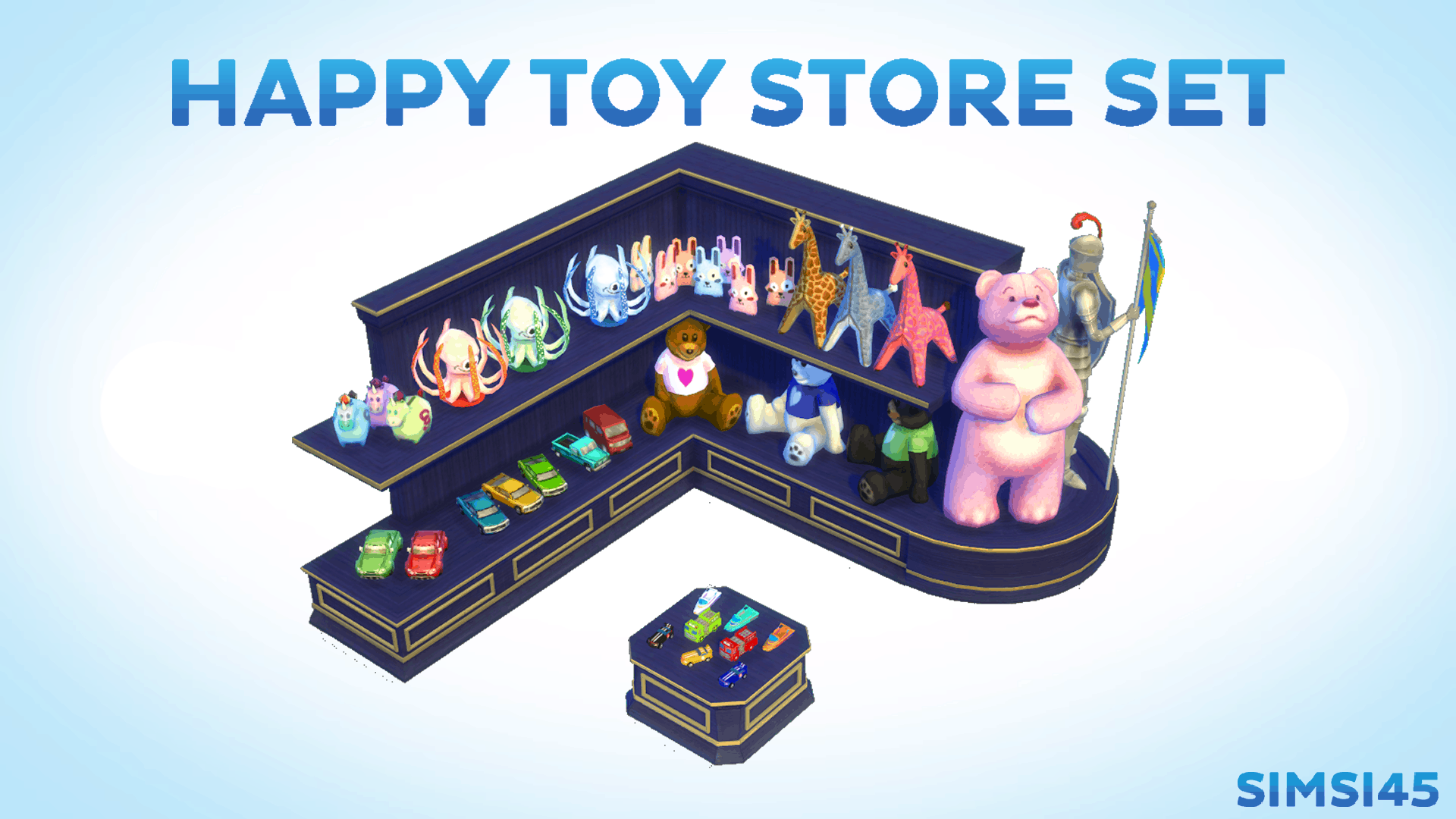 1) You can find EVERYTHING in the pack by searching for: “simsi45” or “toy store” or “toyshop”