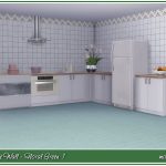 White tile wall with a small, green floral pattern. 4 wall configurations, plus plain white tile option. Part 2 of a 4-part set. Price 2. Found in Tile.