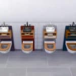 – The sink textures reference the game to keep the files as small as possible, but I added matching recolors for the toilet so each sink has one or more colors to be paired with. I also moved the “flush button” to the side.