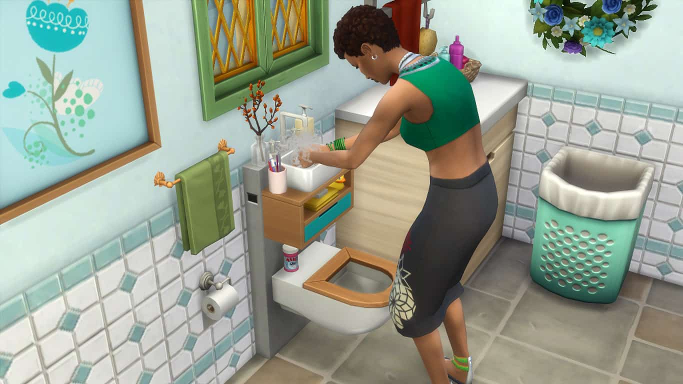 – Right and Left: In these cases sims will stand just to the right or left of the toilet. Choose the sink orientation that best fits your bathroom. Smaller type objects and even bathtubs can often still be placed next to the toilet/sink side at which the sim stands, larger objects sometimes need a little shifting and counters will also fit if placed sideways.