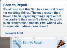 January 9, 2022: New traits for Patchy and the Tragic Clown’s offspring. Added HandymanRepair Commodity to “Born to Repair” (Simsonian Library credit for the suggestion).