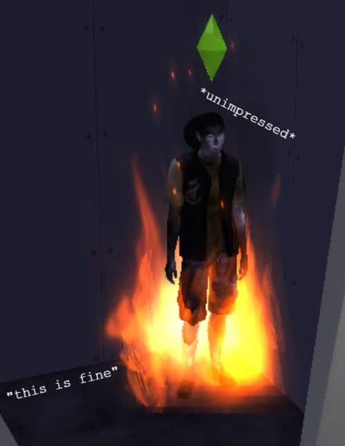 Cannot burn to death. Note that this works by locking the stat that registers burning from fire, like in the case of ghosts, but they will still get singed if they catch fire. It just shouldn’t be able to progress to the point where it would prove fatal.