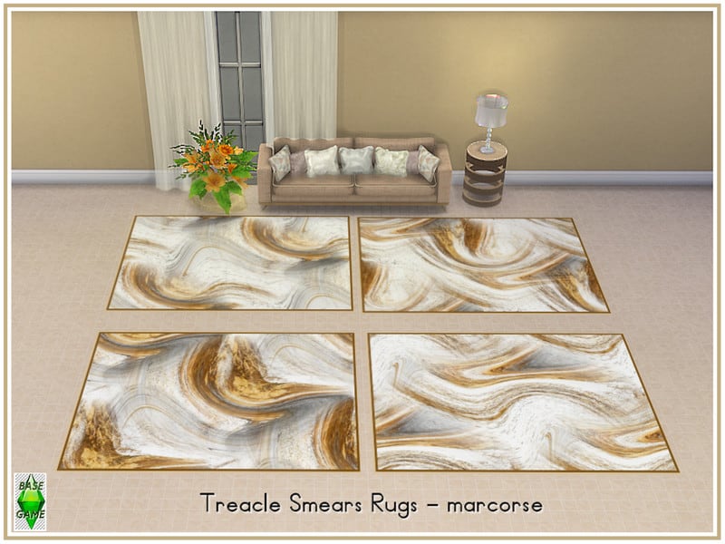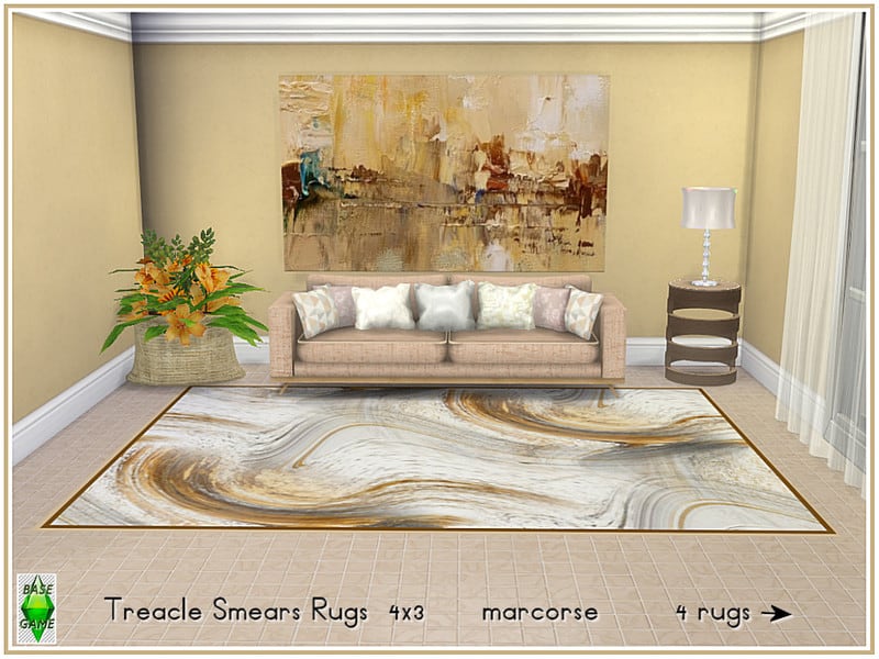Looking very much like fingerpainting with treacle, I thought . . . but still quite stunning on the floor, and will mix/match beautifully in a larger area. 4 rugs [4×3] . Cost: 14.