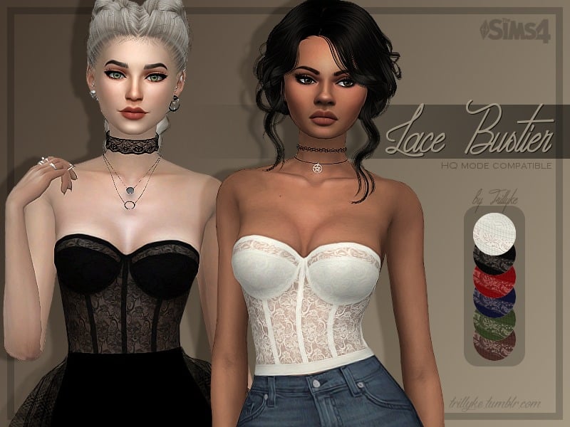 Our database contains only the highest quality Sims 4 mods that meet the most stringent requirements, like Trillyke – Lace Bustier Sims 4 Mod. This guarantees that our visitors have access to the most exclusive and useful files.