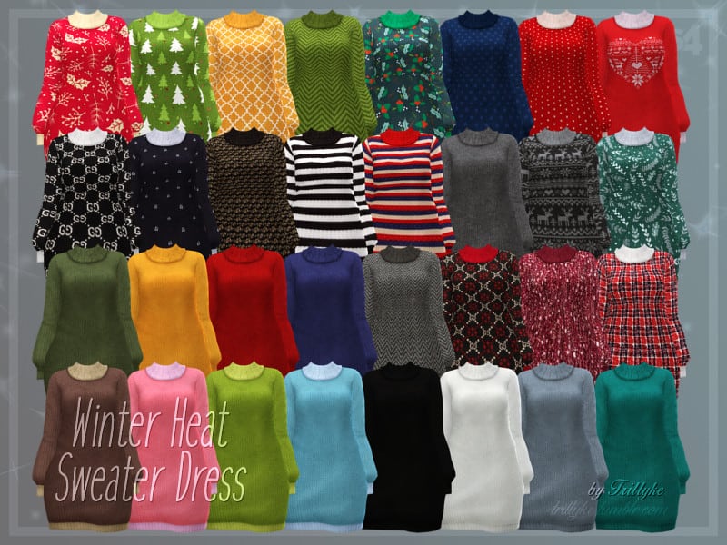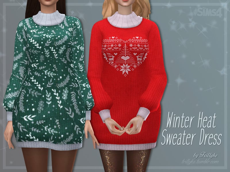 Our database contains only the highest quality Sims 4 mods that meet the most stringent requirements, like Trillyke – Winter Heat Sweater Dress Sims 4 Mod. This guarantees that our visitors have access to the most exclusive and useful files.