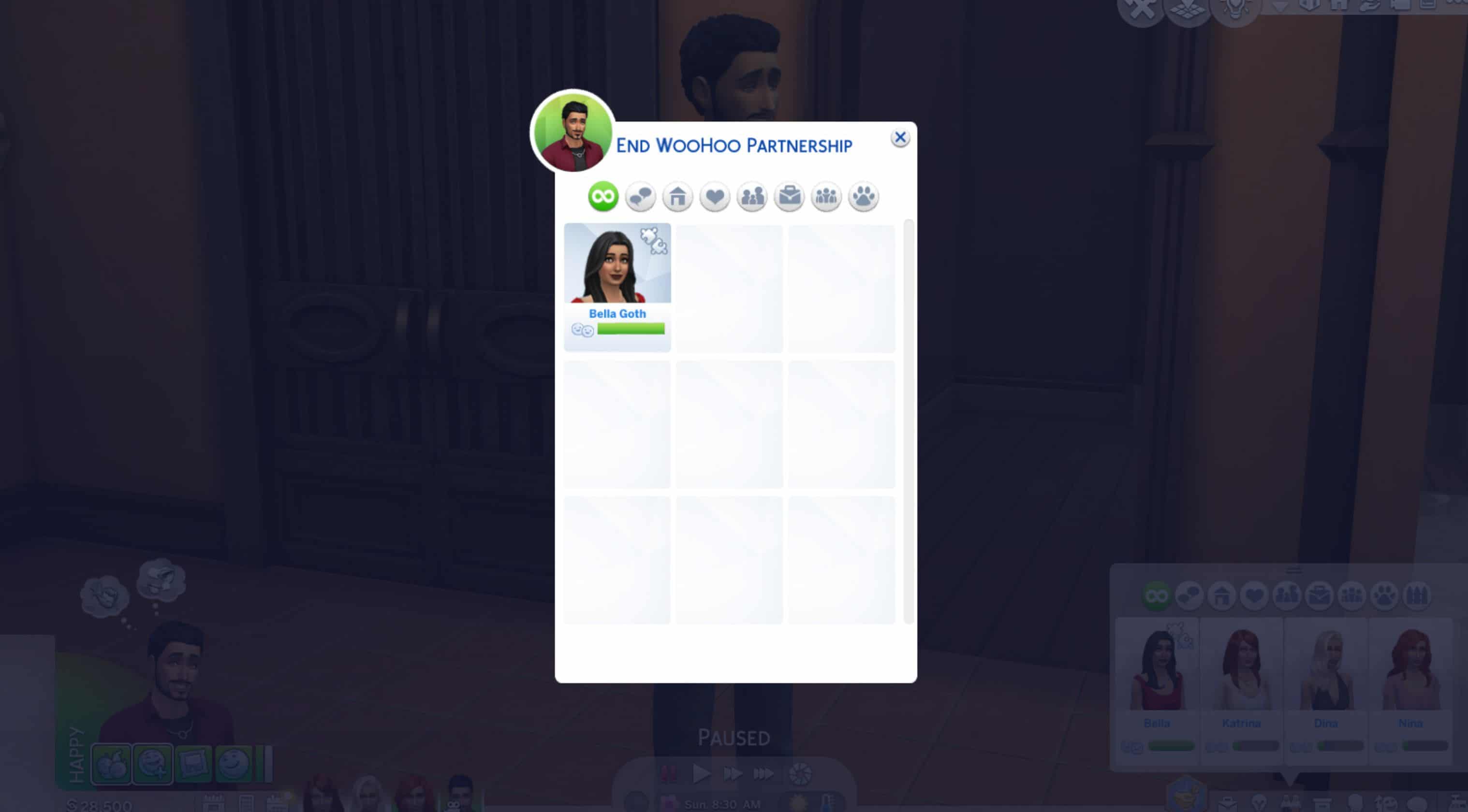 Click on the current Sim and you will find the ‘End WooHoo Partnership’ interaction. Of course, you can still click on the target Sim to end the woohoo partnership.
