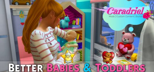Boy, there really is no good way to get an in-world pic of infant CC, is there? Recently rebump-mapped, this infant and toddler conversion of the Sims 2 basic toddler onesie is great for your smallest of country bumpkins. For everyday and cold weather, and coming in the original five colors, your little darlings will be ready for all the mud-splattering, puddle-walking, yeehaw-dancing time they can handle before naptime.