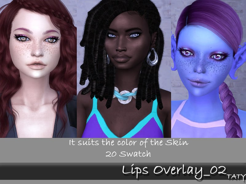 Our database contains only the highest quality Sims 4 mods that meet the most stringent requirements, like [Ts4]Taty LipsOverlay 02 Sims 4 Mod. This guarantees that our visitors have access to the most exclusive and useful files.