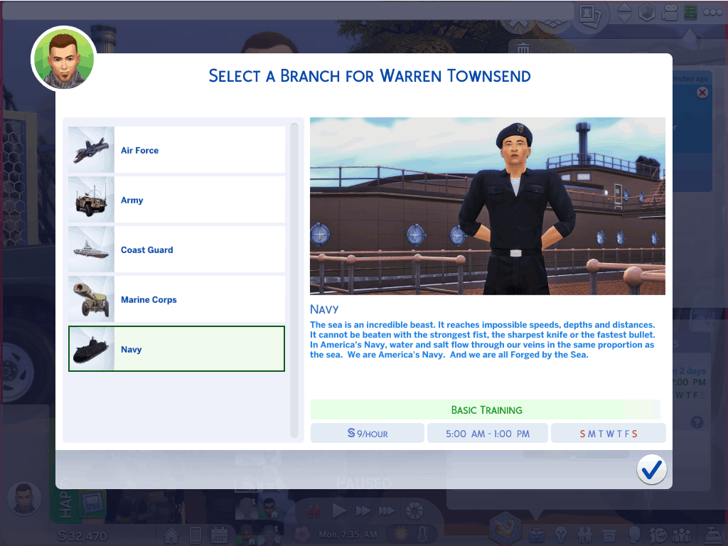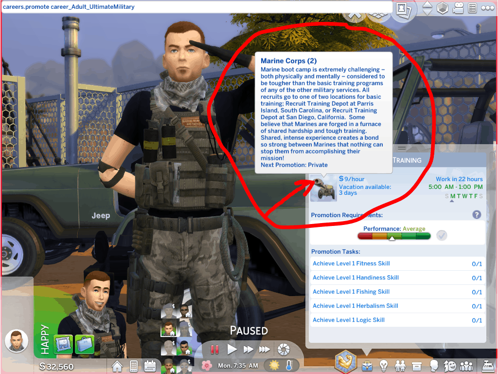 This has been requested multiple times by a few people. There are also a couple of Sims 4 military careers (including one by Neia, eep RESPECT!) and Sims 3 remakes out there. I highly recommend you search them out and see which one you’d like to have or have them all! So, why another one? Well, people asked for it, even when I pointed them to other ones. Also, my grandfather was a retired Navy veteran from WWII and my father served in the Army in Korea. I have an abiding respect for people who give up their time, sometimes life and personal safety to protect their country and others. I simply wanted to honor them in my own way.