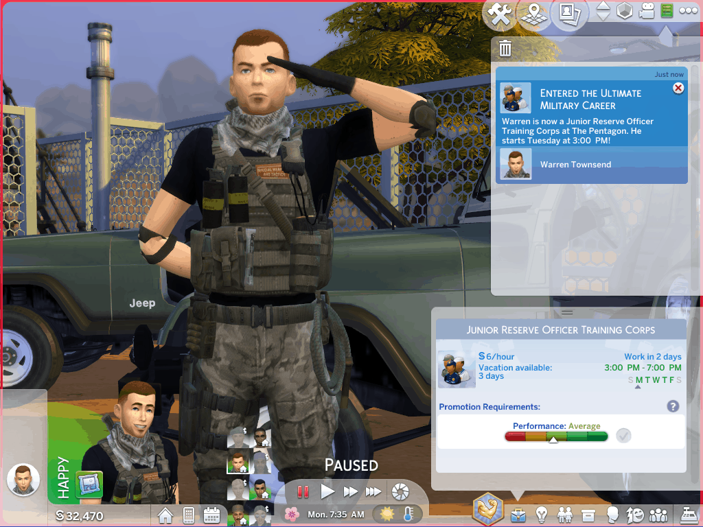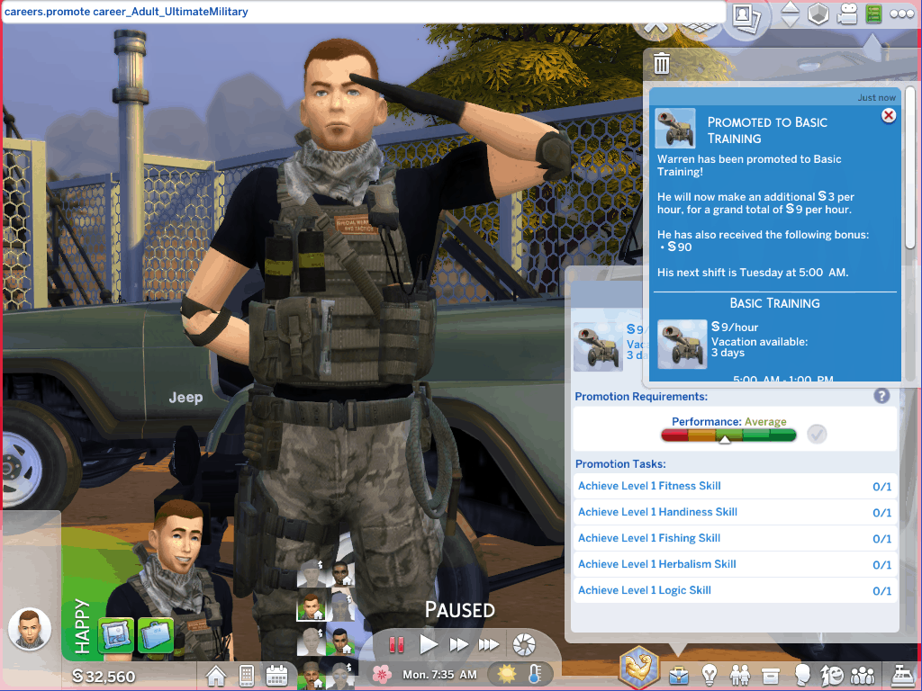This has been requested multiple times by a few people. There are also a couple of Sims 4 military careers (including one by Neia, eep RESPECT!) and Sims 3 remakes out there. I highly recommend you search them out and see which one you’d like to have or have them all! So, why another one? Well, people asked for it, even when I pointed them to other ones. Also, my grandfather was a retired Navy veteran from WWII and my father served in the Army in Korea. I have an abiding respect for people who give up their time, sometimes life and personal safety to protect their country and others. I simply wanted to honor them in my own way.