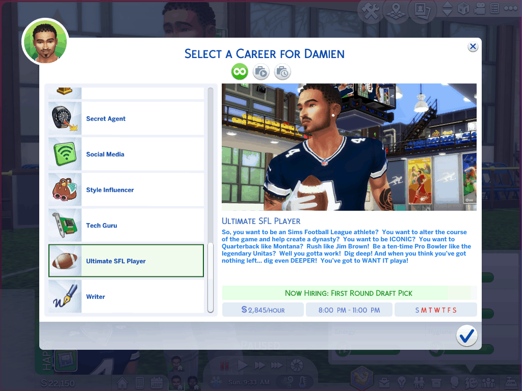 Thank you so much in advance if you decide to try Ultimate SFL Player. I hope your Sim enjoys living ALL their pro football dreams.
