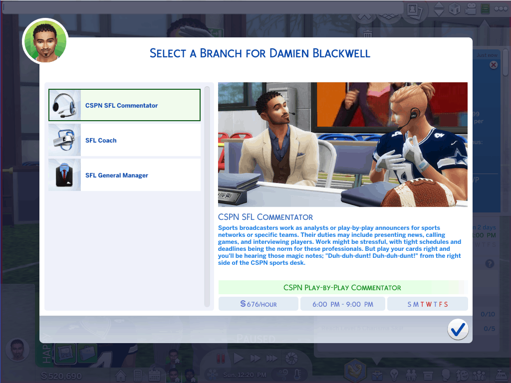 This career a requested companion to my Ultimate SBA Baller career. It’s very similar but was requested for American Football. If you love basketball and football, this one is for you. You can have both this career and the SBA Baller careers in your game with no problems.
