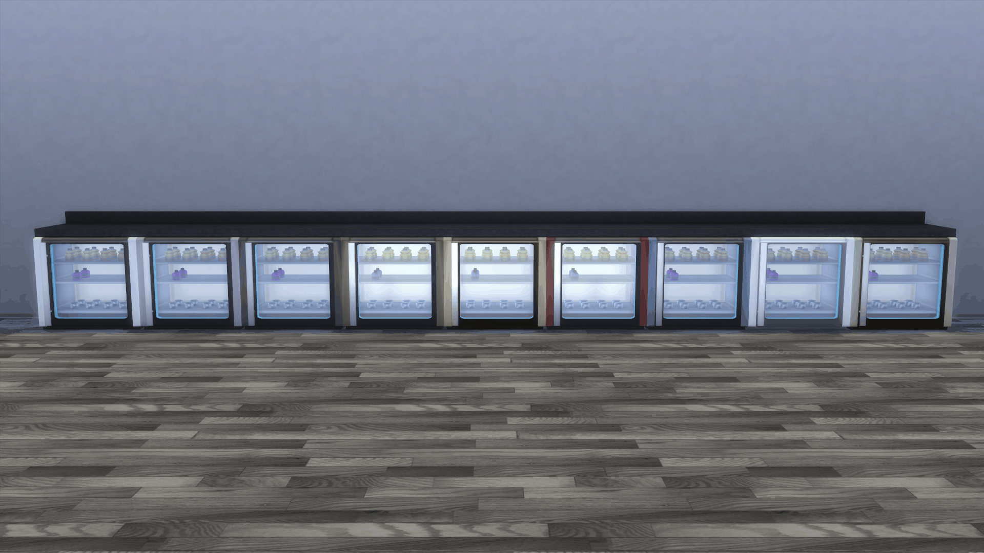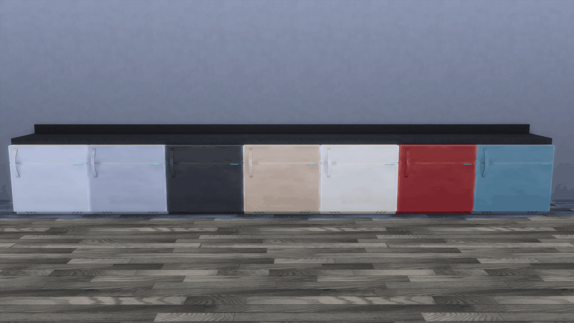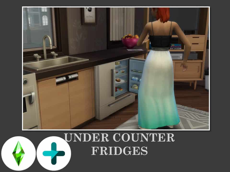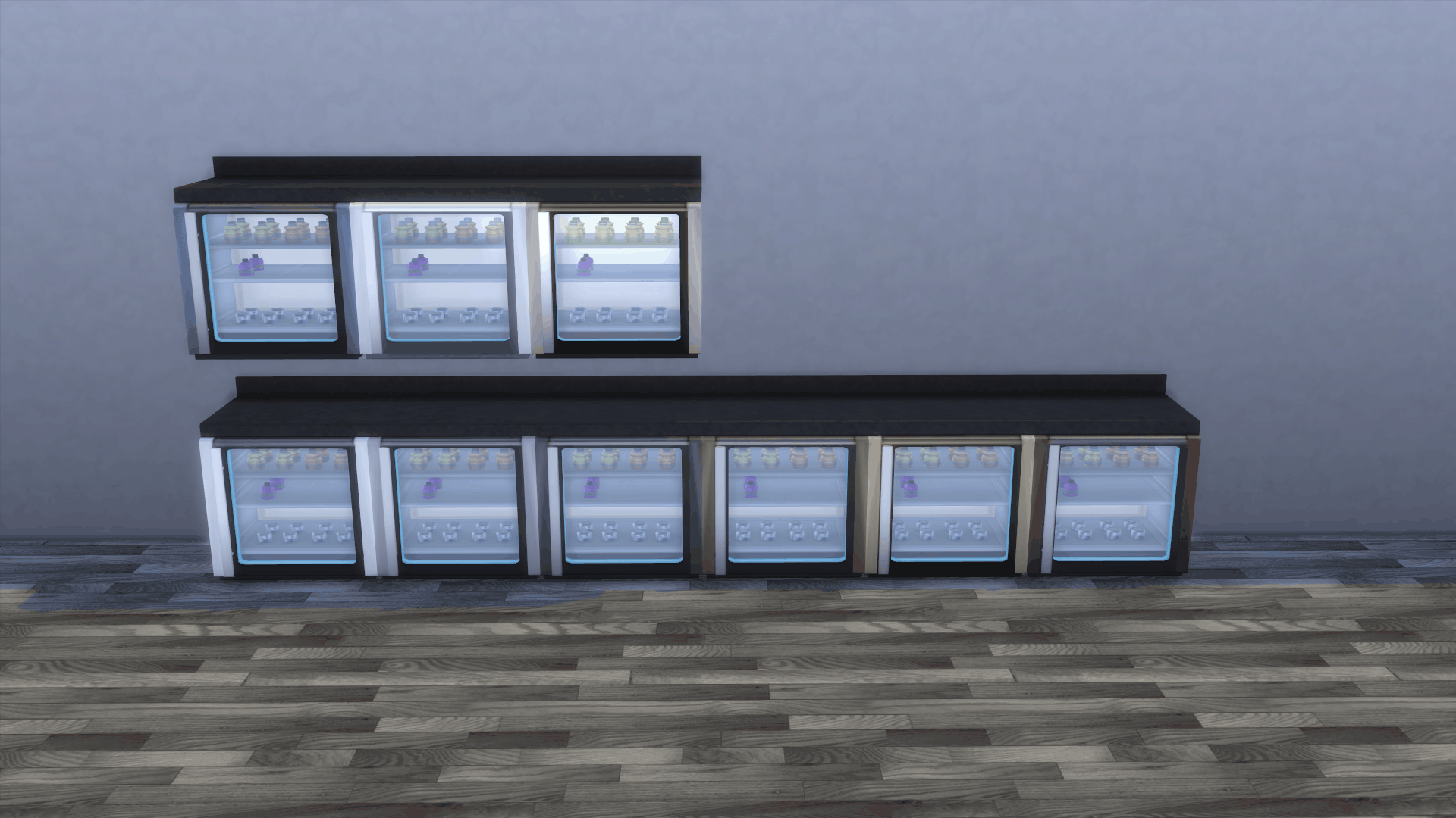I’ve cloned all the fridges in the game (if there were any added with Star Wars I don’t have that pack) and made them snap into counters, and resized the meshes so they fit under the counters. Some visible items in the fridges with glass doors have been squished in the process, I thought they were cute so I left it.