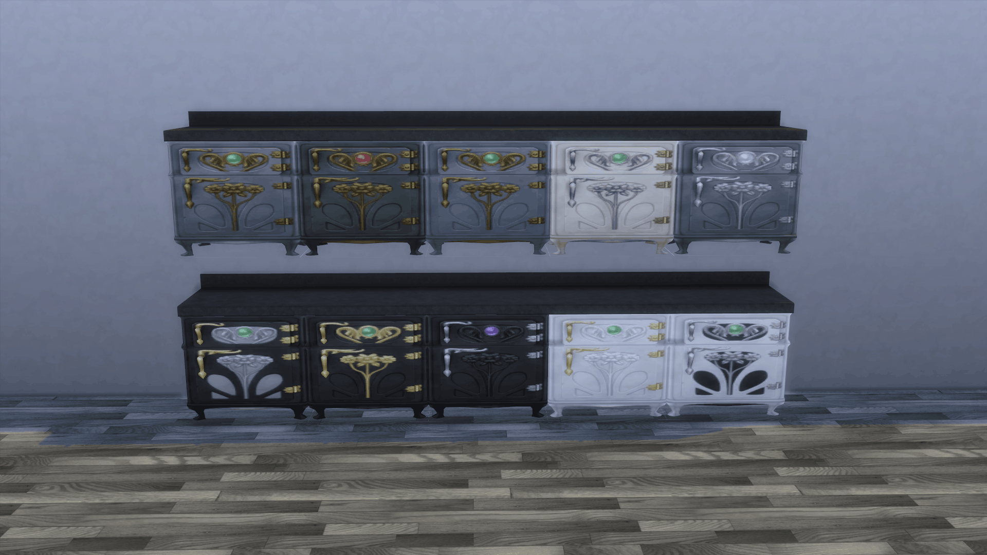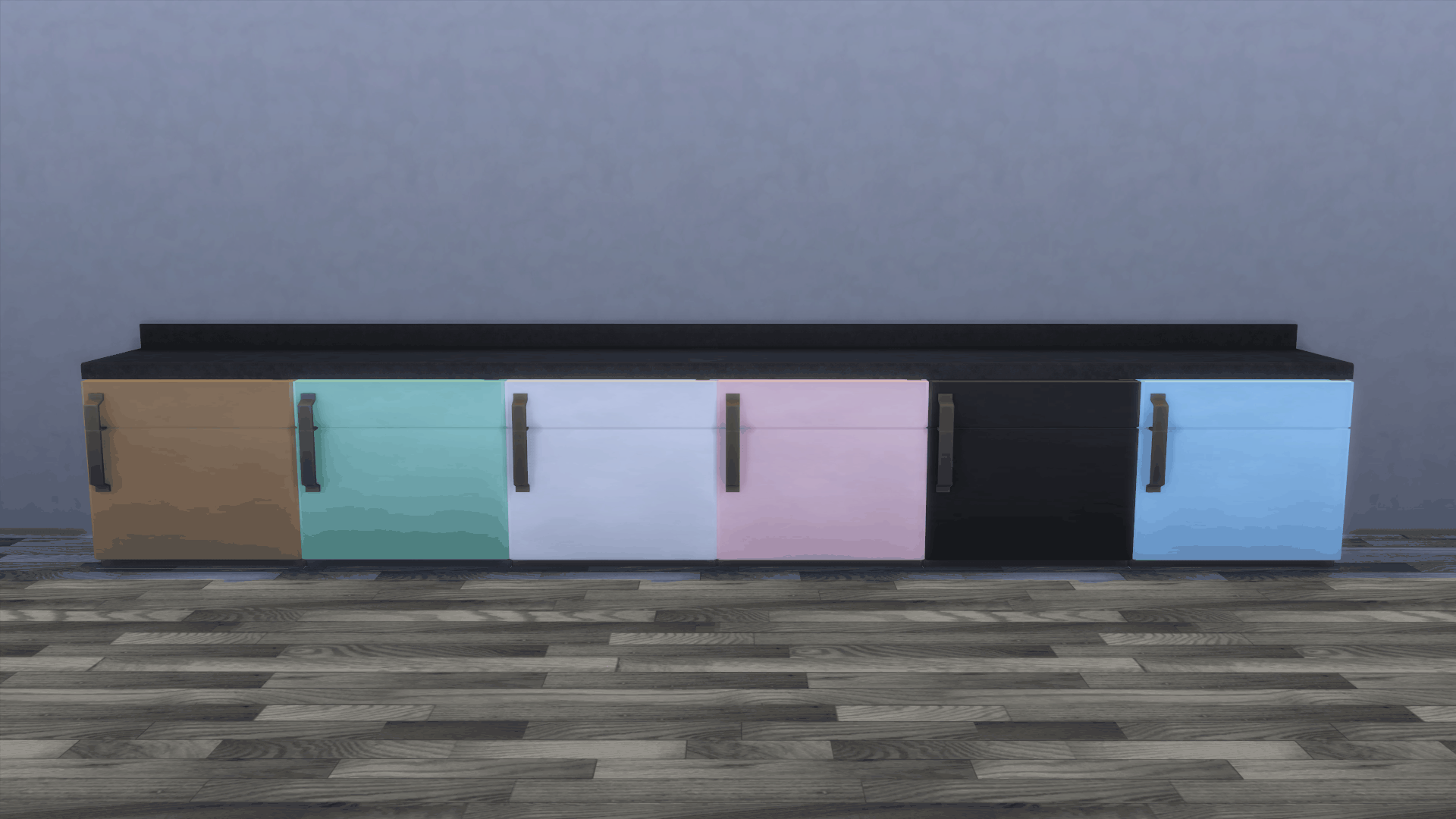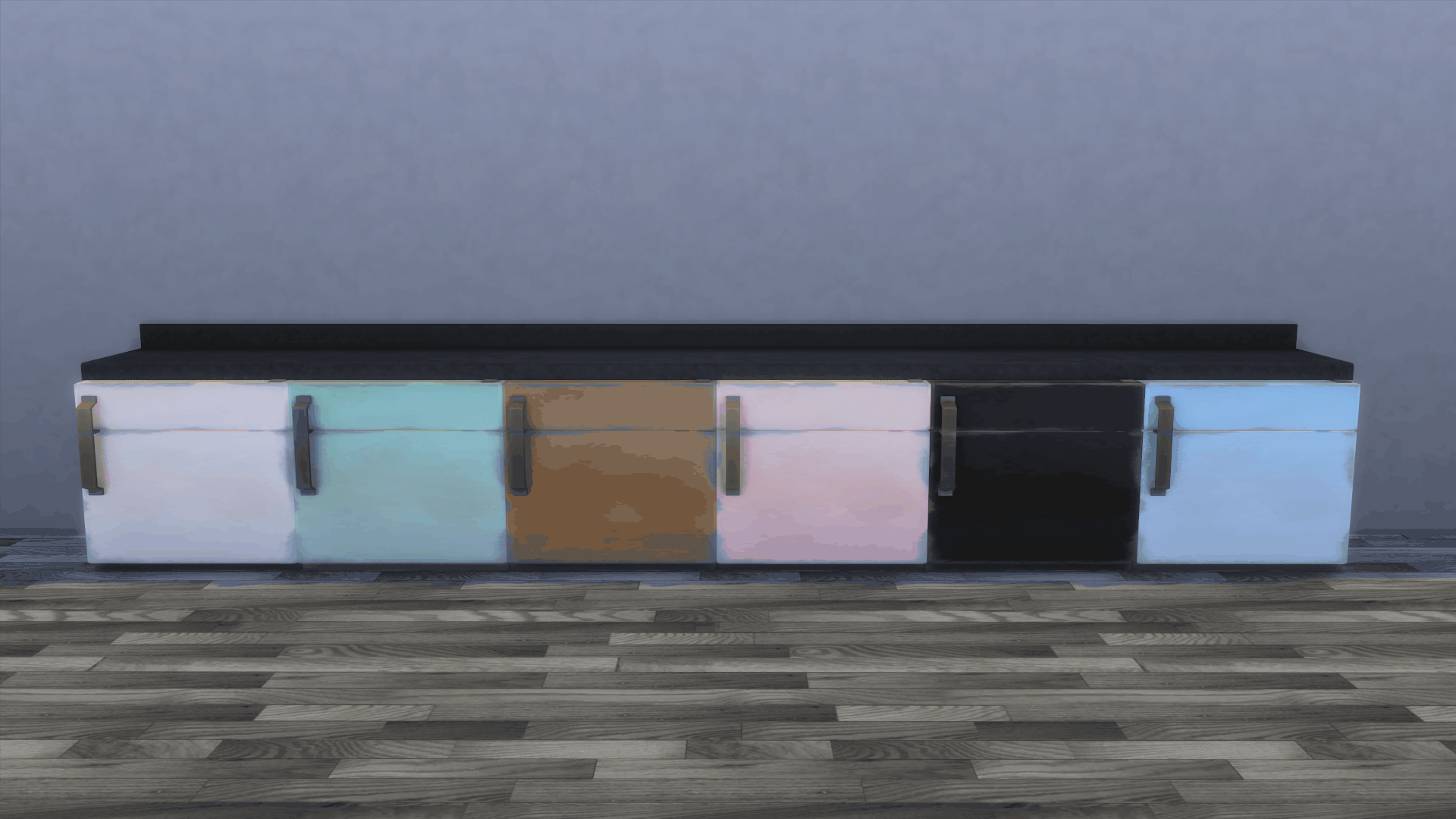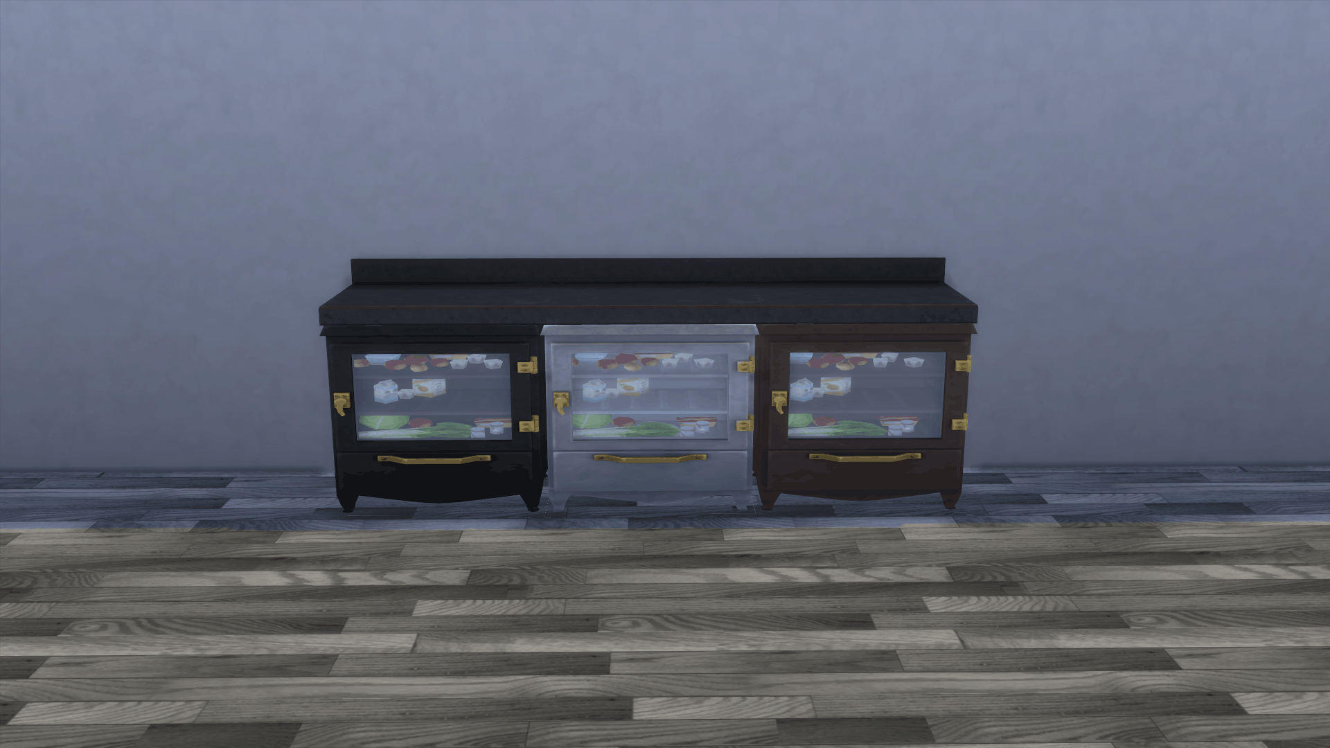 I’ve cloned all the fridges in the game (if there were any added with Star Wars I don’t have that pack) and made them snap into counters, and resized the meshes so they fit under the counters. Some visible items in the fridges with glass doors have been squished in the process, I thought they were cute so I left it.