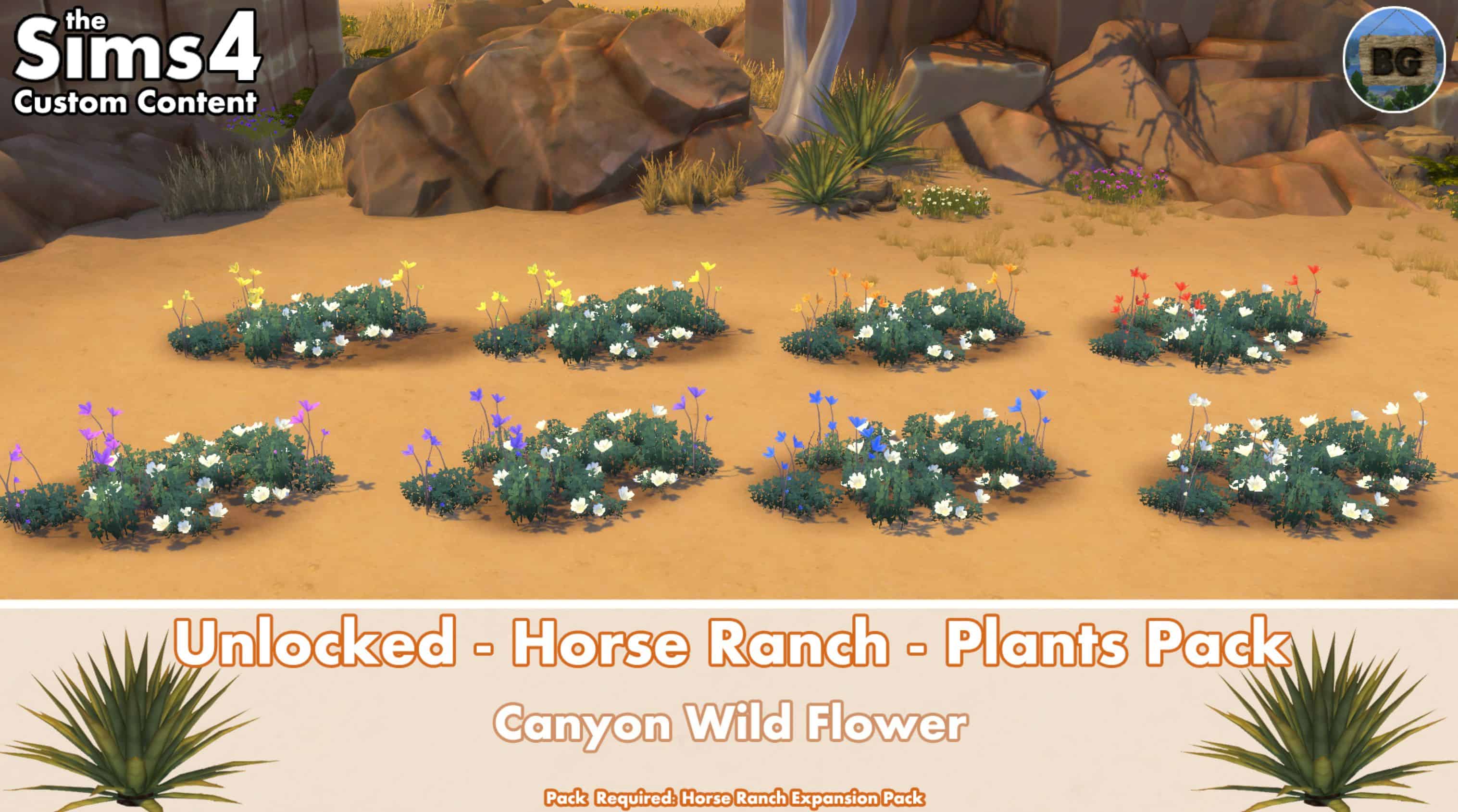 Where my former mod pack was about all missing Horse Ranch EP trees, this one is about all plants from that pack which couldn’t be found in build mode before. This pack adds the following 14 additional plants, for which some of them recieved extra recolors.