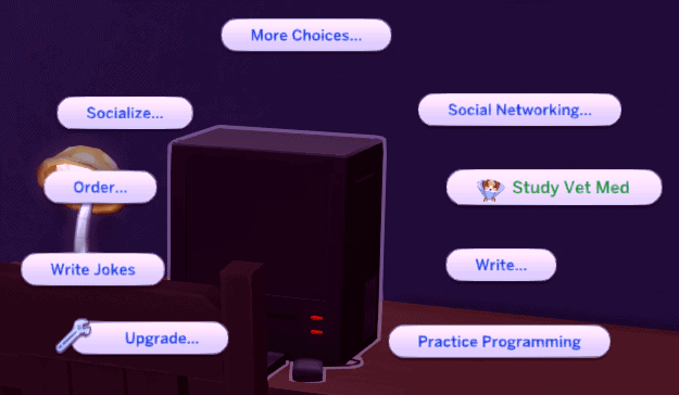 You can raise your veterinarian & pet training skill using the “Study Vet Med” interaction on any computer!