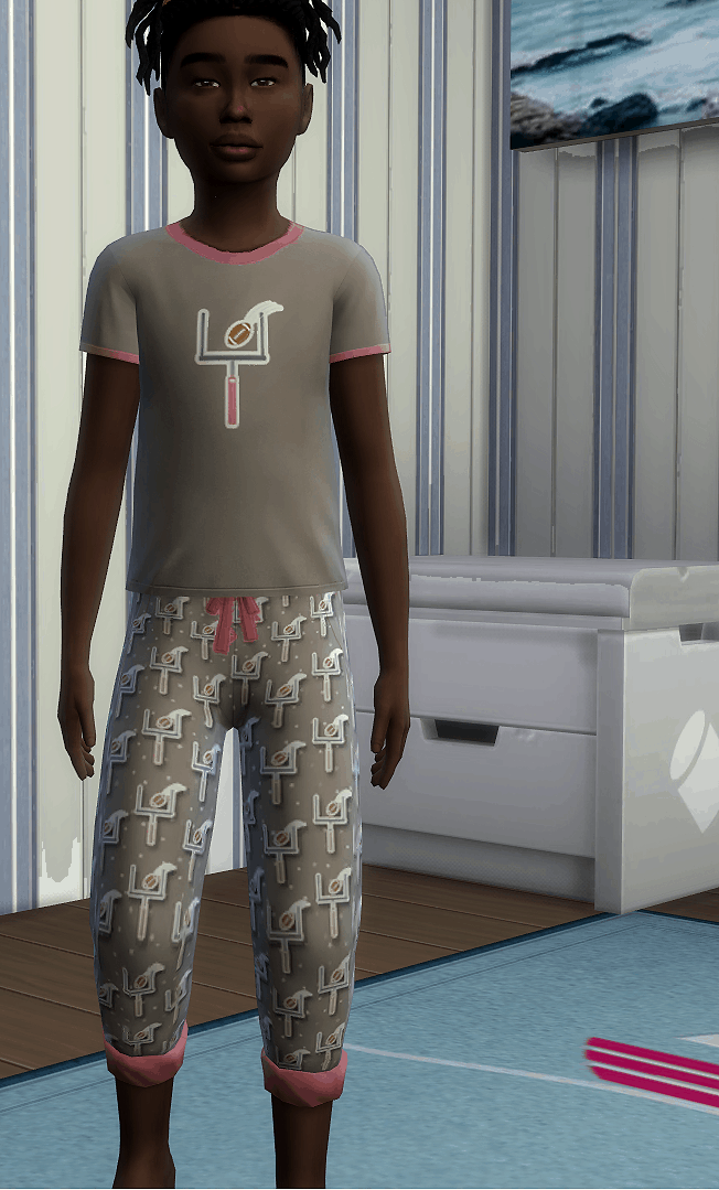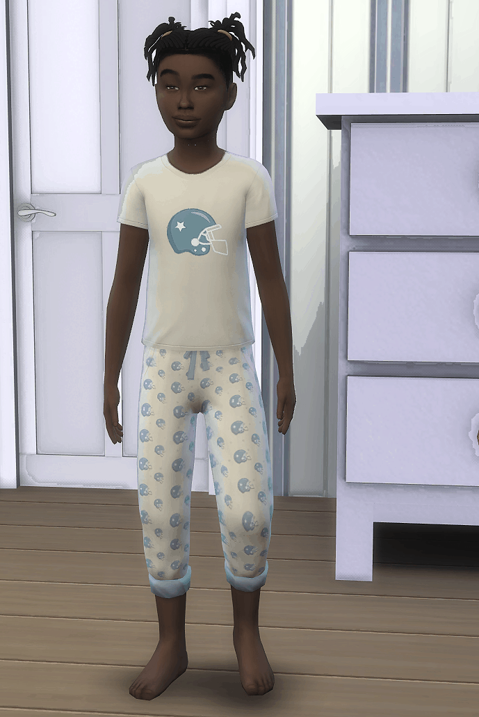 Been a while since I uploaded on here. Been enjoying playing the game since I was late to the party with Sims 4, I had 5yrs to catch up on! Anyway, I noticed a distinct lack of boys attire in the game, so I decided to make my own. I started with jammies seeing as I’ve been living in them in the lock down!