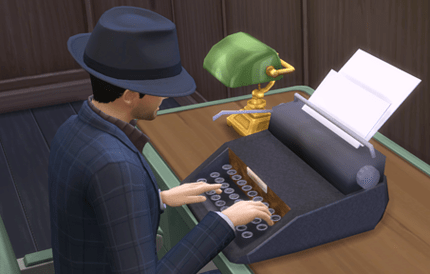Here’s a big old funky typewriter for your anachronistic sims. It functions as a computer, cloned from the cheapo How Low Can You Go computer and using its animations and skillbuilding. It’s found in the Electronics section in Buy Mode, with the computers, and costs a measly 300 simoleons.