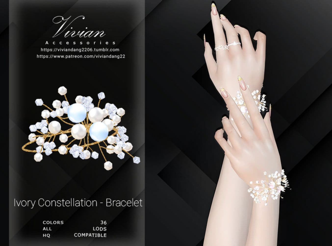 Our database contains only the highest quality Sims 4 mods that meet the most stringent requirements, like VivianDang_AF_Bracelet_L_Ivory Constellation Sims 4 Mod. This guarantees that our visitors have access to the most exclusive and useful files.