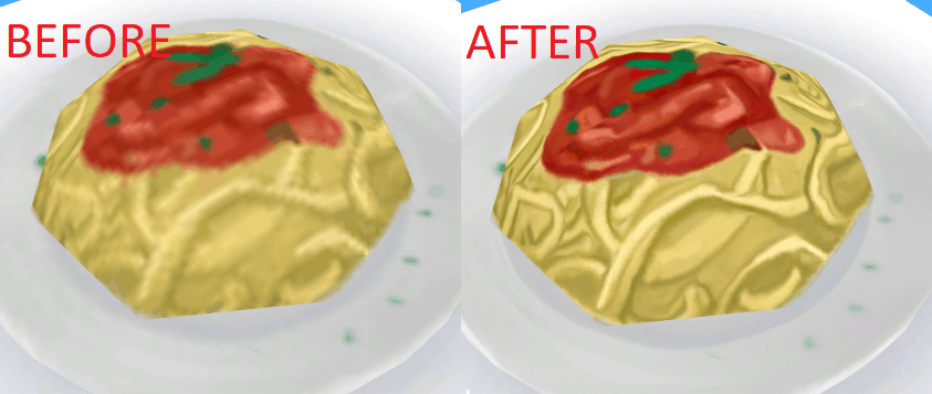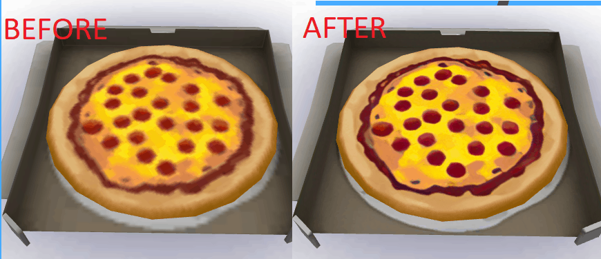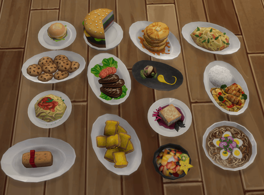 This mod override all food textures with one 4 times bigger (upscaled), keeping the original maxis match look, so you can get closer without it looking like an absolute mess. (mostly, some are so messed that it’s hard to make it good)