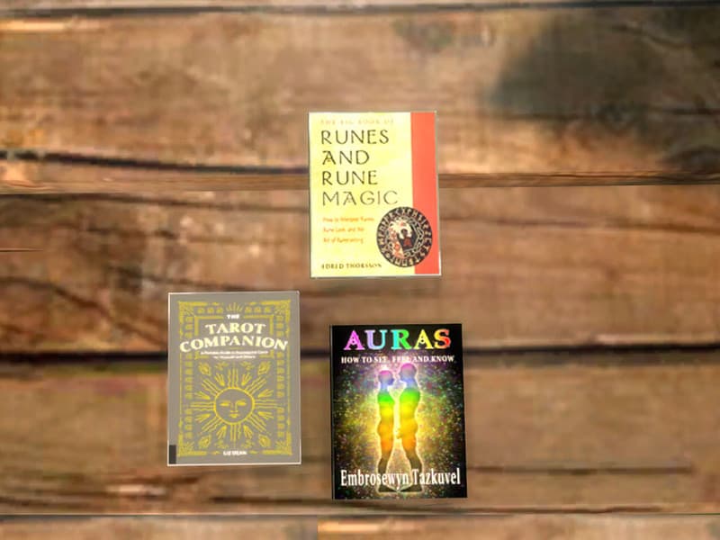 Books for your witchy sim. 3 books, one about rune magic, one about auras, and a tarot companion.