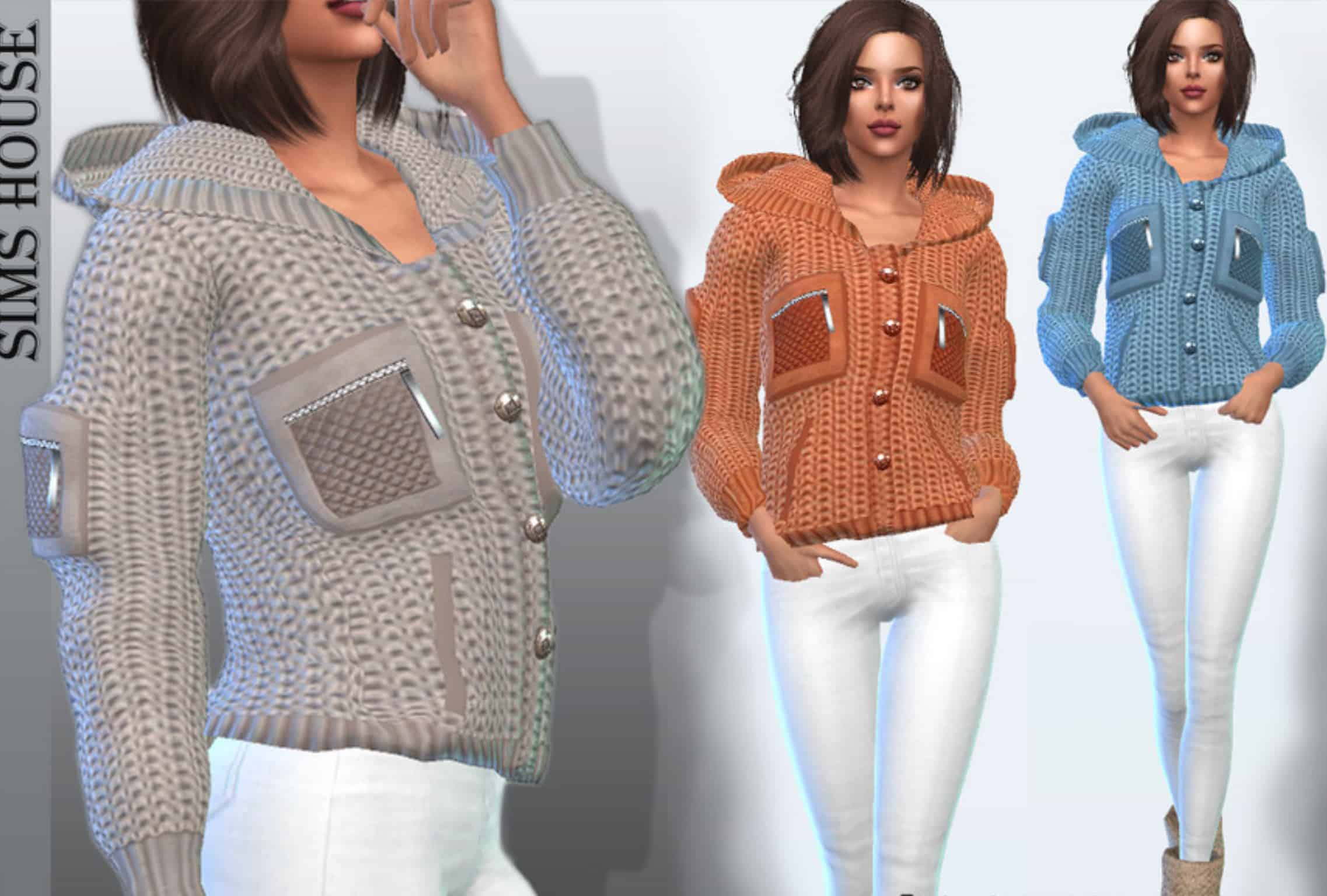 Our database contains only the highest quality Sims 4 mods that meet the most stringent requirements, like Women’s knitted hooded jacket Sims 4 Mod. This guarantees that our visitors have access to the most exclusive and useful files.