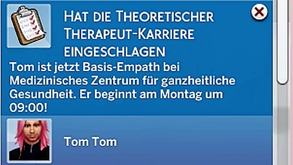 You exercised being confident – for the Sims coming here to you! Now you practize every Monday, Tuesday, Thursday and Friday from 8 a.m. till 1 p.m. as somewhat inbetween a clinical linguist, teaching brain stroke patients and children how to speak clearly again, and an emergency psychologist, mentally catching sad Sims who need First Aid on their soul. This is very, very exhausting! At the end of the day, sometimes you think, your head explodes; you still work on Charisma, perfect your Logic, and even gain in Comedy up to level 5: Sometimes laughing is the best medicine! At least for the Clients; you do this all for your good heart and the fee of 480 Simoleons per hour. After promotion, you’ll be an