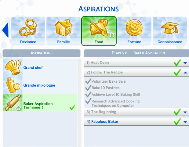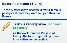 The Baker aspiration will prepare your Sim to become a world-famous bakery chef and a bakery owner.