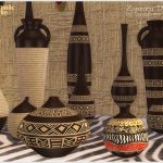 Set decorative ceramic vases ‘Zanzara’ for decoration the room in ethnic African style.