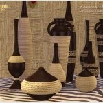 The set includes 12 different vases: floor and table, decorated hemp rope and patterns in ethnic style.
