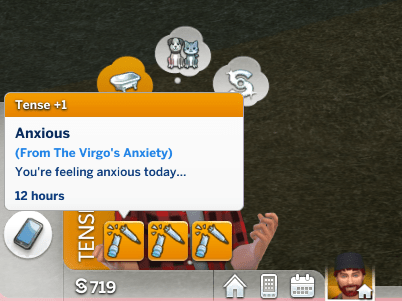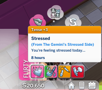 Every 6 to 24 hours, your Sim will get an Energized buff (emotion weight of 3) for 4 hours. Moreover, every 3 to 7 days, your Sim will get a Stressed buff (emotion weight of 3) for 24 hours.