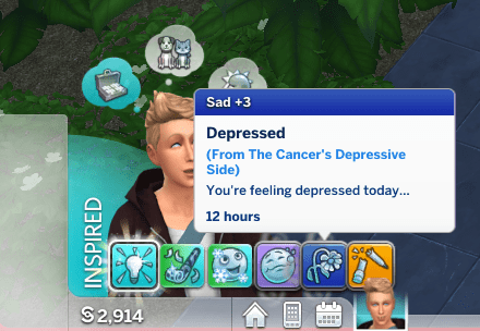 Your Sim will get a Sad proximity buff (emotion weight of 2) every time he/she will be around a Mean Sim.