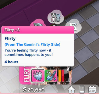 Your Sim will have a Persuasive buff for as long as he/she is having a conversation.