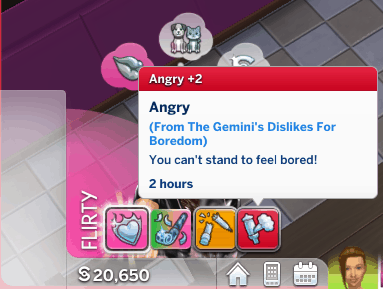 The decay of all your Sim’s angry buffs will permanently be increased by a multiplier of 2.