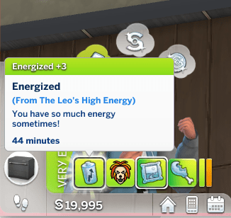 Your Sim will always have an Energized buff (emotion weight of 1).