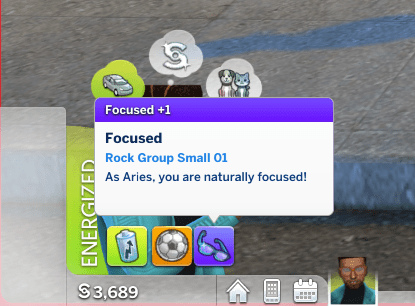 Your Sim will always have an Energized buff (emotion weight of 1) as well as a Focused buff (emotion weight of 1).